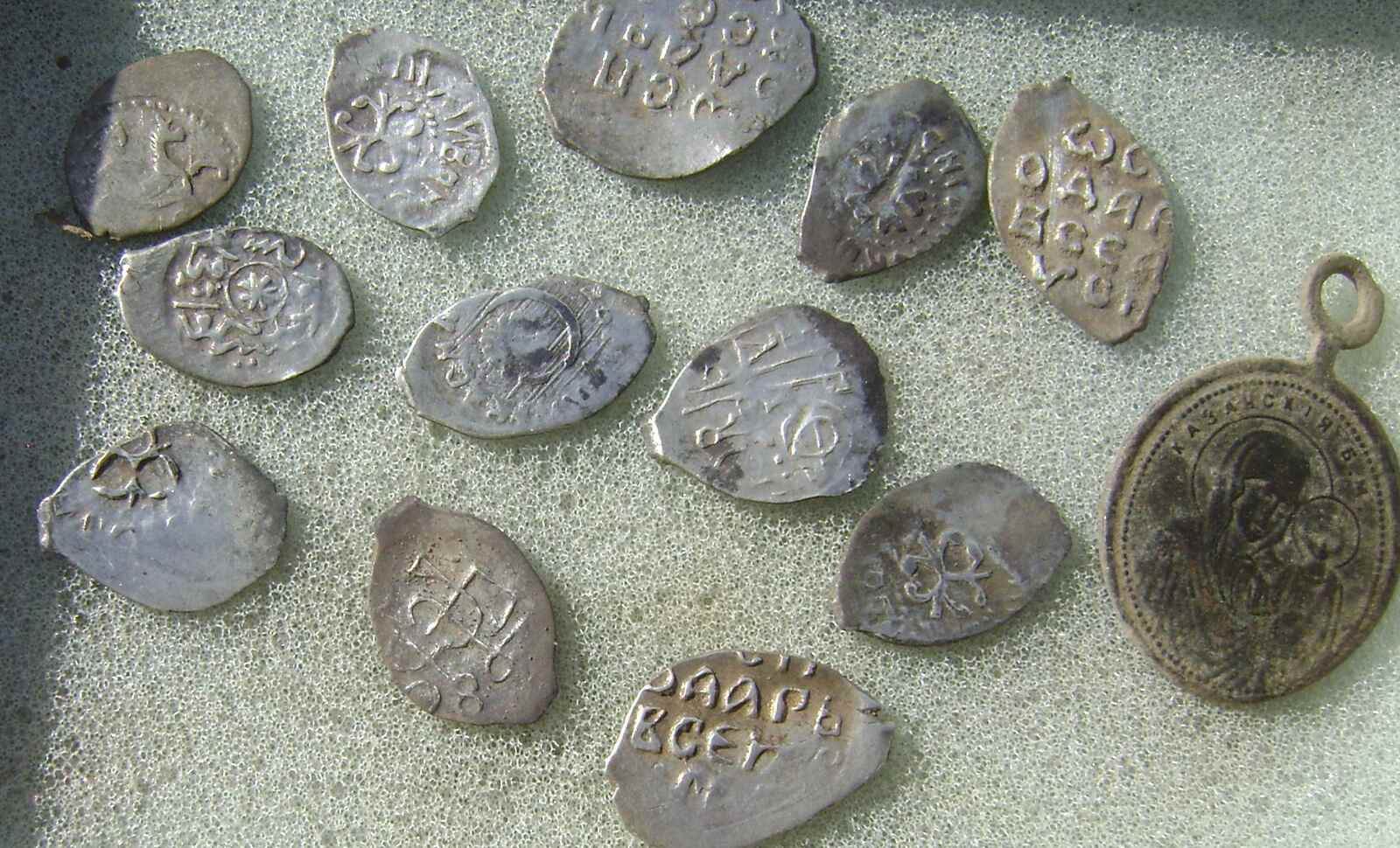 Хозяйка Барсика, пенсионерка Лидия Семенова, рассказала, что питомец часто спускался в подвал и царапал пол. Когда женщина решила проверить, что привлекает кота, она обнаружила под деревянными досками глиняный кувшин с монетами. Эксперты установили, что это так называемые "чешуйки" – серебряные копейки ручной чеканки.